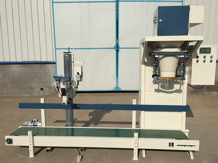 人工上袋,機(jī)器自動(dòng)稱重灌裝、自動(dòng)松袋,經(jīng)輸送帶傳遞到縫包機(jī)進(jìn)行縫包、傳輸。