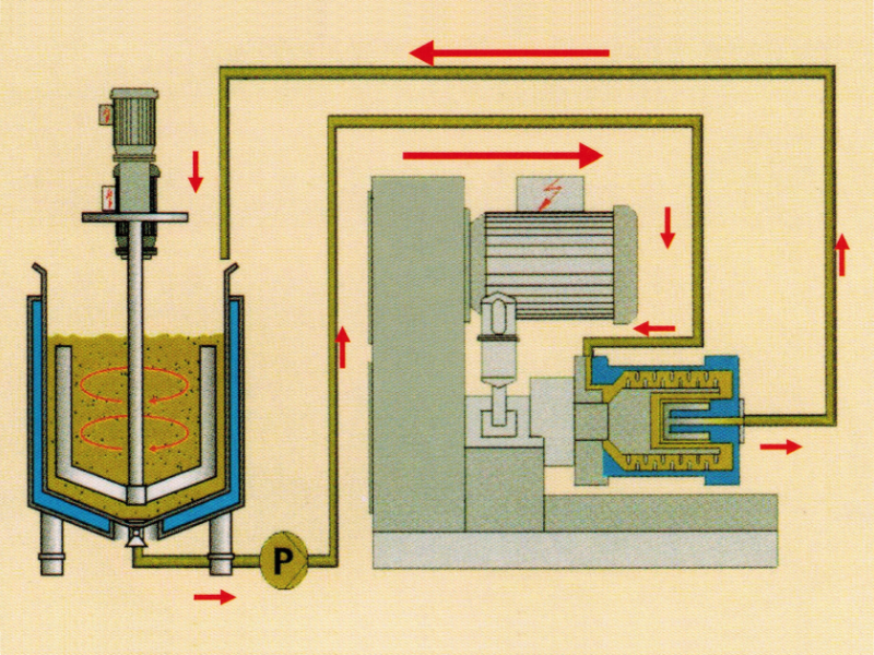 縮短漿料在磨腔內(nèi)的滯留時(shí)間,有效抑制溫度上升。通過(guò)循環(huán)冷卻水的冷卻,可實(shí)現(xiàn)低溫砂磨。